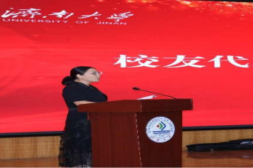 学院党委书记丛菡菡登台致辞,作为“济南大学”更名后招收的第一届学生,她以大师姐的身份,用温暖又热情的话语向新同学们表达热烈的欢迎和殷勤的希望。丛菡菡书记谈到,同学们是祖国繁荣昌盛的见证者,也将是学校“冲一流、进百强”,是学院“聚力同行、共创一流”的参与者,希望大家始终保有“揽星衔月逐日光”的梦想和潜力,始终怀揣“不畏浮云遮望眼”的专注和定力,始终追寻“万里长空竞风流”的本领和能力,多做有意义的事,成为有用的人。