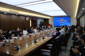 4月18日上午,山东省量子未来技术学院揭牌仪式暨建设研讨会在济南大学办公楼第一会议室隆重举行。山东省教育厅高等教育处处长曾宪文,济南量子技术研究院执行院长张强、副院长周飞,河南大学纳米科学与材料工程学院副院长白锋,中国电信济南分公司党委书记、总经理刘晓峰,中电信量子集团华北公司副总经理洪泰辉,九章(济南)量子科技有限公司总经理徐佳敏应邀出席。学校党委书记刘春华,党委副书记、校长刘宗明,教务处、物理必一运动(官方网站)B·Sport-权威运动资讯网站、材料科学与工程学院、化学化工学院、信息科学与工程学院、管理科学与工程学院相关负责同志参加,相关学院师生代表在分会场参会。会议由学校党委常委、副校长王霞主持。