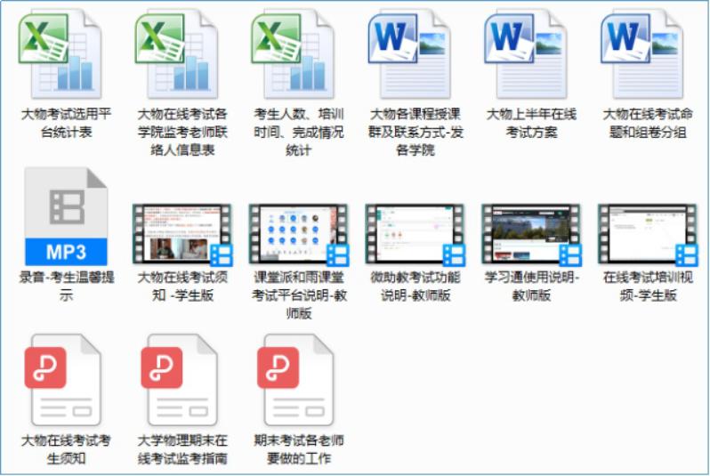 大学物理教学部和光电系、物理系、能源系根据各自的课程特点,制定了有针对性的考试方案。大物教学部在考试和命题环节,采用了统一命题,多平台考试,分散考生和考试时间的方式以缓解网络压力。同时,建立题库,随机组卷,采用乱序功能以避免作弊。在考务工作环节,则采用全员行动,落实到人,时时沟通,事事反馈的形式。并通过以点带面,逐级培训的方式,确保大家都能在考试指南的指导下顺利完成考试任务。光电系等专业院系则通过视频会议研讨期末考试的形式、难度和监考组织形式。分析比较各种线上考试手段,结合各专业课程的特点,帮助老师们有效掌握和选取线上考试方式,保障期末考试顺利完成。