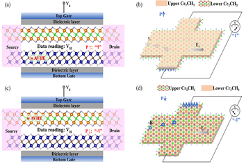 本工作针对反铁磁二维材料设计,以及谷物理耦合作用难点,以第一性原理和经典物理机理分析为手段,系统研究了具有功能化功能的MXene双层Cr2CH2材料体系,提出了一种通过层间滑移或外场调控 AVHE 的新机制。该策略通过研究“自旋-谷-外场”的耦合特征,实现了反铁磁体系中的多自由度操控。结果表明,双层Cr2CH2材料体系的AB双层结构同时具有本征铁电性和自旋极化的谷极化,反转铁电极化方向,实现了层依赖的谷极化控制及层锁定AVHE的生成。对于缺乏铁电性AA双层结构,施加垂直电场可诱导能带中的自旋分裂,这使得通过改变施加电场方向来控制层依赖的谷极化和AVHE成为可能。这项工作拓展了当前二维反铁磁材料体系谷相关物理研究,为开发基于反铁磁、实现电写电读操控量子信息的新型存储材料,提供了可行策略和设计原则。