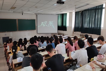 物理学院物理系教工党支部与物理学生党支部以弘扬党的精神,传播党的意志为初心,积极组织老师与同学们展开深入交流。活动分两部分进行,第一部分由物理系教工党支部书记杨中娟和物理学生党支部书记伊梦寒为学生上党课。在悠扬又激昂的旋律下,杨老师以“讲好党的故事,铭记党的历史”为主题,向同学们讲述中国共产党的精神,传播着中国共产党的理念,教育引导学生牢固树立“四个意识”,“四个自信”,做到“两个维护”。伊老师以“接过奋斗的接力棒”为主题向同学们介绍了新民主主义革命阶段,社会主义革命和社会主义建设阶段,改革开放和社会主义现代化建设的新阶段中发生的众多大事,从中共一大到新中国的成立,从抗匪剿匪、抗美援朝到十一届三中全会后众多领导人为祖国富强,人民幸福所作出的种种努力。老师们的讲解充分展现了无数中国共产党人为了国家的兴盛所做出的努力,充分激发了大家承继伟业、团结奋斗、继续前行的爱国热情。