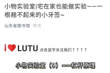 志愿者们提前录好了实验课堂的视频,写好实验课堂的讲稿,将内容发送给山东省少儿图书馆的老师,由他们将实验课堂在山东省少儿图书馆的微信公众号上播出。在视频课程中,志愿者们首先用有趣的例子向孩子们抛出疑问,引出本次实验的主题,并引导着孩子们进行思索和考虑。之后通过实验,实验中志愿者先是搭建了一个奇怪的牙签平台,利用杠杆原理,成功的将压在最下面的牙签撬动,神奇非凡,随着牙签平台的增长,牙签依然能被撬动,而且撬动的越来越高!而在视频之外,是所有志愿者们的辛勤付出和精心设计,是每一个参与者的汗水和相互鼓舞。一次次失误才铸就了完整流畅的这一次视频。视频一经播出,志愿者们就受到了观众小朋友的喜爱,而少儿图书馆的微信公众号的该视频也获得了网民的点赞和鼓励。