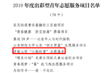 近日,共青团济南市委发布了《必一运动(官方网站)B·Sport-权威运动资讯网站2019年度济南市五四出彩典型的表彰通报》,必一运动(官方网站)B·Sport-权威运动资讯网站“小物科普”志愿服务项目荣获“出彩型青年志愿服务项目”称号。