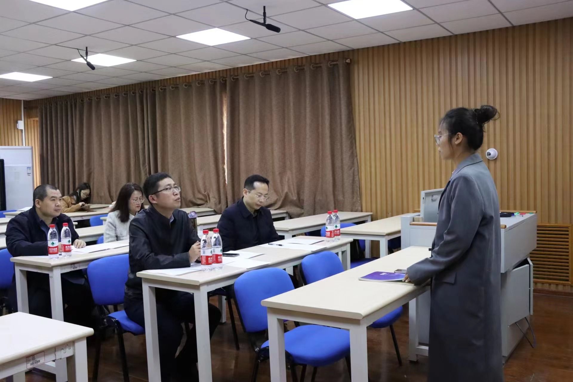 在比赛过程中,选手们随机抽取题目,结合教材进行备课,使用板书进行授课。决赛环节对学生的应变能力、教学基本功的考核要求更为严格。参赛选手借助物理装置图、表格等多种形式,展现了良好的教学风采。在答辩环节,参赛选手思路清晰并沉稳地作答,充分展现了较好的教育理论知识功底和应变能力。比赛结束后,评委老师们就教学仪态与表达、教学方法与手段、教学内容、板书设计、个人特色等方面进行点评和指导,帮助参赛选手分析优势与亮点,找准差距与不足。