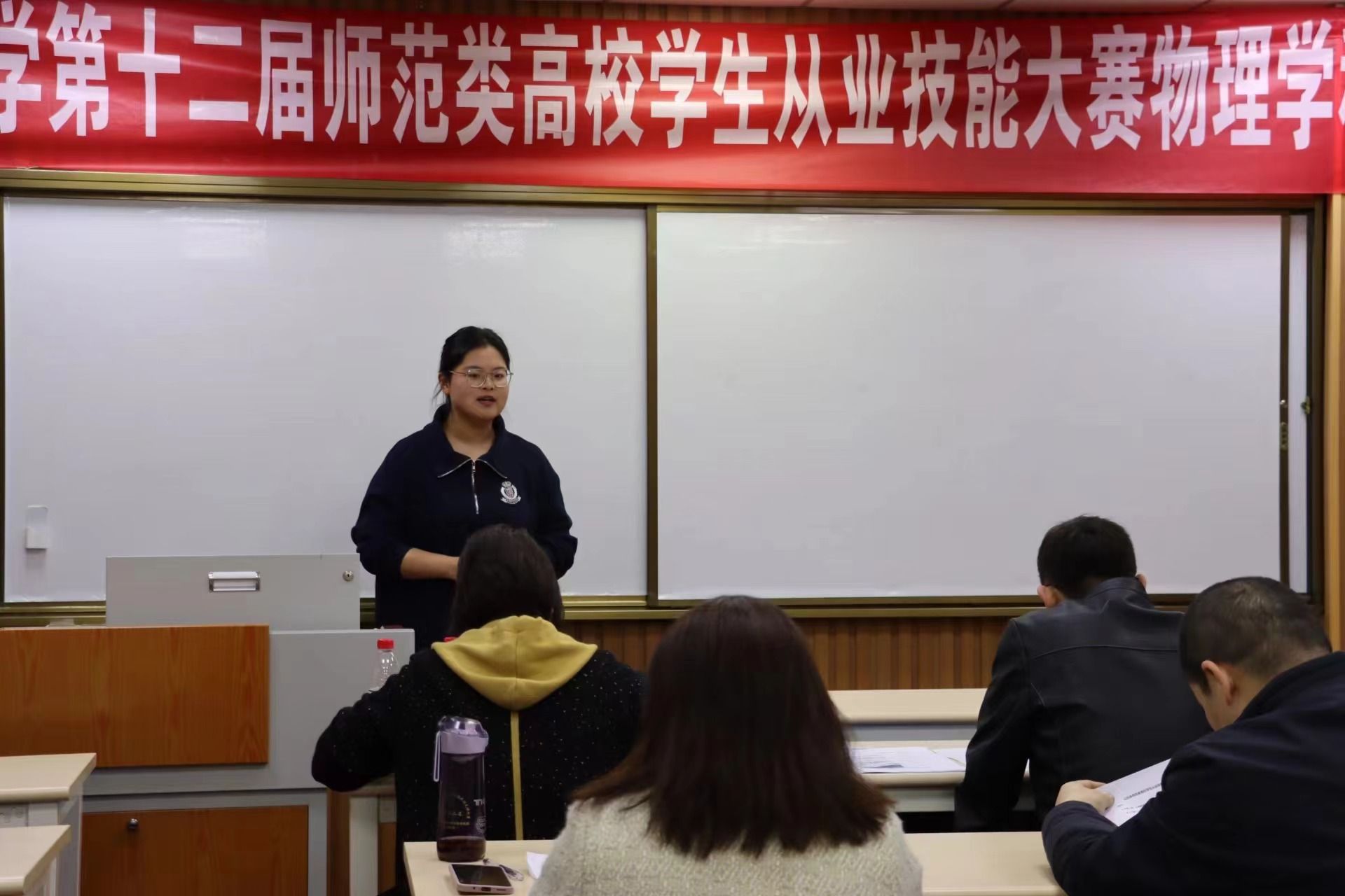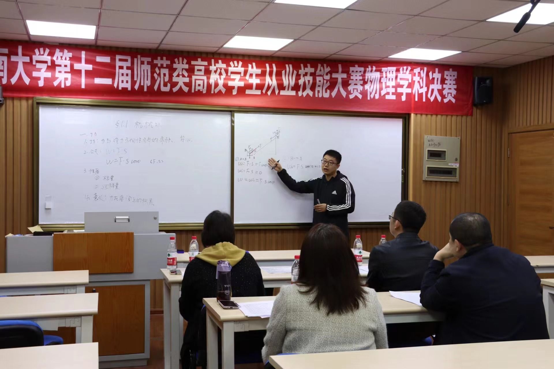 为强化师范生从教基本技能教学与训练,提升师范生的教学技能、实践能力和综合素质,推进教师教育持续健康发展,4月2日,由物理必一运动(官方网站)B·Sport-权威运动资讯网站承办的第十二届师范类高校学生从业技能大赛(物理学科)校级决赛在七教A607举行。