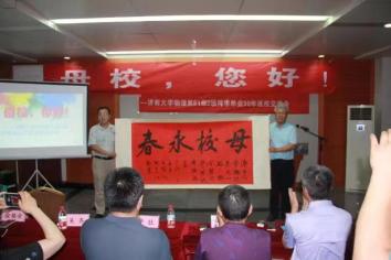 校友代表刘志林深情回顾了在学校求学期间的点点滴滴,从济大求学之路到工作奋斗之路,从恩师教导到同窗友谊,他表示,尽管毕业离开母校,但一如既往的关心关注和支持母校的发展与进步,并向物理必一运动(官方网站)B·Sport-权威运动资讯网站徐锡金院长赠送了由中国书协会员、山东省书协行书委员会副主任胡宗江先生书写的“母校永春”书法作品。